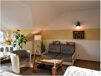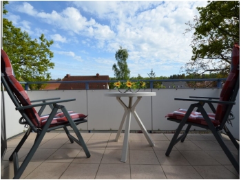 Unser sehr liebevoll und komfortabel eingerichtetes Ferienapartment Sonnenschein (40 qm, komb. Wohn-/Schlafraum, Balkon, Bad mit Dusche/WC, Küchenzeile, max. 2 Erw. und ein Kind bis 17 J.) befindet sich im 1. Obergeschoss, in einem modernen Apartmenthaus zwischen Ostseestrand und Bodden.